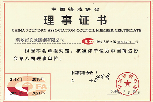 这一年,公司董事长王纪中被中共辉县市委授予“全市优秀共产党员”荣誉称号、我们取得了《一种托轮减重孔型芯的制作方法》发明专利证书,第三项发明专利授权累计取得三项发明专利。长城铸钢成功当选河南省铸锻工业协会的常务理事单位,又先后亮相了第十六届中国铸造协会年会并当选理事单位、第十八届中国国际铸造博览会暨中国铸造节活动......